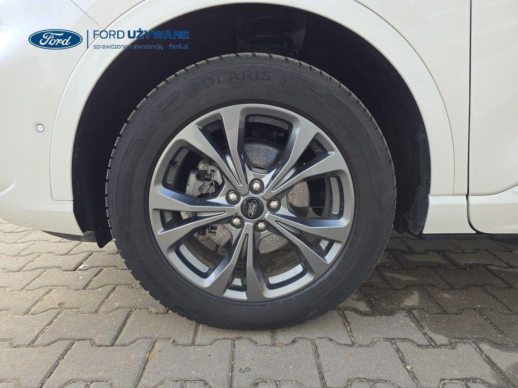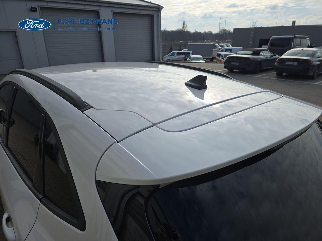 Wyposażenie standardowe wybrane elementy : *Elektroniczny układ stabilizacji toru jazdy (ESC) – z układem poprawiającym stabilność na zakrętach (TVC), układem ułatwiającym ruszanie na wzniesieniach (HSA) *Elektryczny hamulec postojowy *Lane Keeping Alert (zawiera: Lane Keeping Aid (system wspomagający utrzymanie pojazdu na pasie ruchu, z funkcją wykrywania krawędzi jezdni) *Pre-Collision Assist - działający w oparciu o informacje z kamery przedniej system wspomagający kierowcę w unikaniu lub zmniejszaniu skutków kolizji z poprzedzającymi pojazdami, pieszymi lub rowerzystami do prędkości maksymalnej pojazdu 120 km/h *Ford KeyFree - system centralnego zamka z kluczem elektronicznym *Immobiliser (PATS) *FordPass Connect z modemem GSM - zawiera: zdalne zamykanie/otwieranie zamków drzwi, funkcję lokalizacji pojazdu, status systemów pokładowych, informację o ruchu drogowym przez kanał GSM (live Traffic), WI-Fi hotspot, aktualizację map nawigacji przez Wi-Fi, *Radioodtwarzacz z SYNC 3, DAB+ i nawigacją satelitarną – kolorowy wyświetlacz dotykowy 8", Applink 3.0, Apple CarPlay, Android Auto, TMC (informacja o ruchu drogowym), zestaw głośnomówiący z Bluetooth® i rozbudowaną funkcją sterowania głosem w języku polskim oraz funkcją wzywania pomocy, 6 głośników, gniazdo USB, zdalne sterowanie na kierownicy, mapy Europy z widokiem 3D, menu tekstowe w języku polskim, komunikaty głosowe i menu tekstowe nawigacji w języku polskim *Wyświetlacz na tablicy zegarów - 12.3" kolorowy *Klimatyzacja - dwustrefowa z automatyczną regulacją temperatury *Bezprzewodowa ładowarka do smartfonów *Ford MyKey® *Przycisk rozrusznika – Ford Power *Szyby – elektrycznie sterowane szyby przednich i tylnych drzwi - opuszczanie i podnoszenie jednym naciśnięciem przycisku *Fotele – styl sportowy, tapicerka materiałowa ciemna Foundry/Eton ręczna regulacja podparcia odcinka lędźwiowego fotela kierowcy i pasażera) *Zawieszenie - sportowe *Obręcze kół ze stopów lekkich – 18", z wykończeniem w kolorze Rock Metallic, ogumienie 225/60 *Lusterka boczne – sterowane, podgrzewane i składane elektrycznie, z lampkami oświetlającymi podłoże *Pakiet stylizacyjny nadwozia ST-Line - stylizowane zderzaki, profilowane nakładki na nadkola lakierowane w kolorze nadwozia, listwy progowe i listwy boczne nadwozia lakierowane w kolorze nadwozia *Relingi bagażnika dachowego – z wykończeniem w kolorze czarnym *Szyby boczne - obramowanie w kolorze czarnym *Tylny spojler *Czujniki parkowania – z tyłu i z przodu *Kamera ułatwiająca parkowanie - z tyłu *Reflektory - światla przeciwmgielne LED *Reflektory – ze światłami mijania LED oraz światłami do jazdy dziennej LED *Reflektory automatyczne – włączające się automatycznie w zależności od poziomu natężenia światła *Tylne światła – częściowo w technologii LED *Wycieraczki przedniej szyby – o zmiennej prędkości, z przerywaczem pracy, elektrycznie sterowane spryskiwacze *Wycieraczki przedniej szyby – sterowane automatycznie, z czujnikiem deszczu ───────────────────────────────────────────────────────────── Samochód sprzedawany przez Autoryzowanego Dealera Marki Ford. Frank-Cars Częstochowa, ul. Jagiellońska 147/151