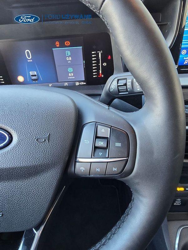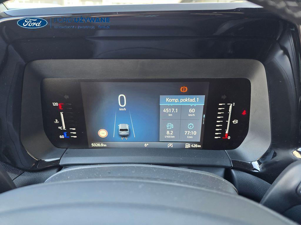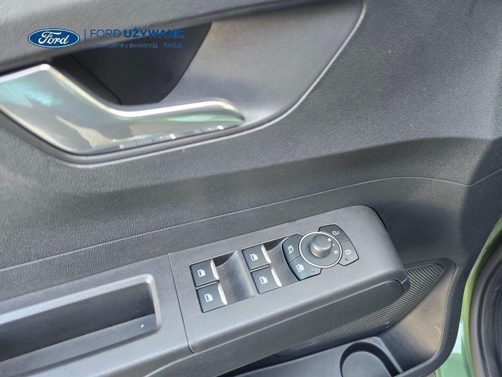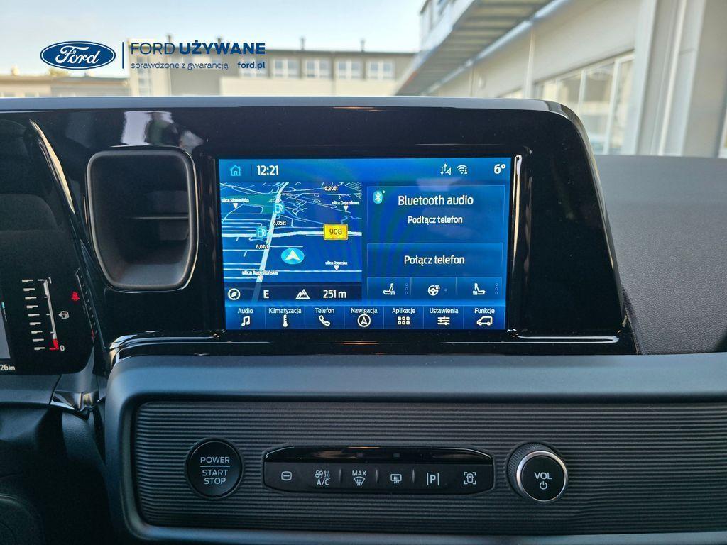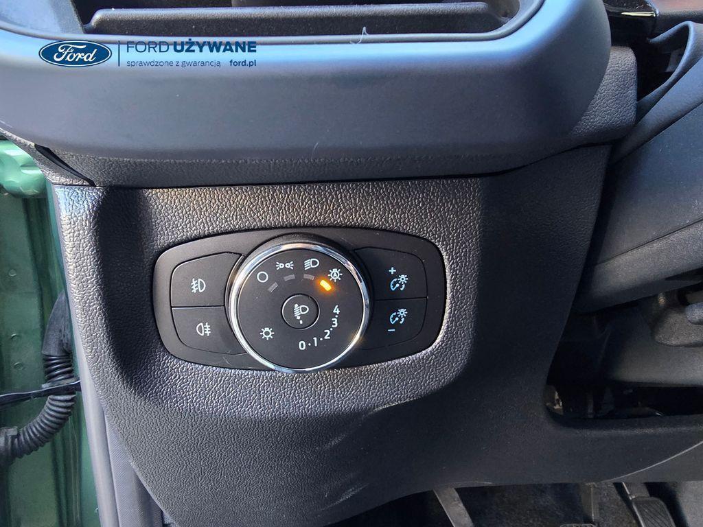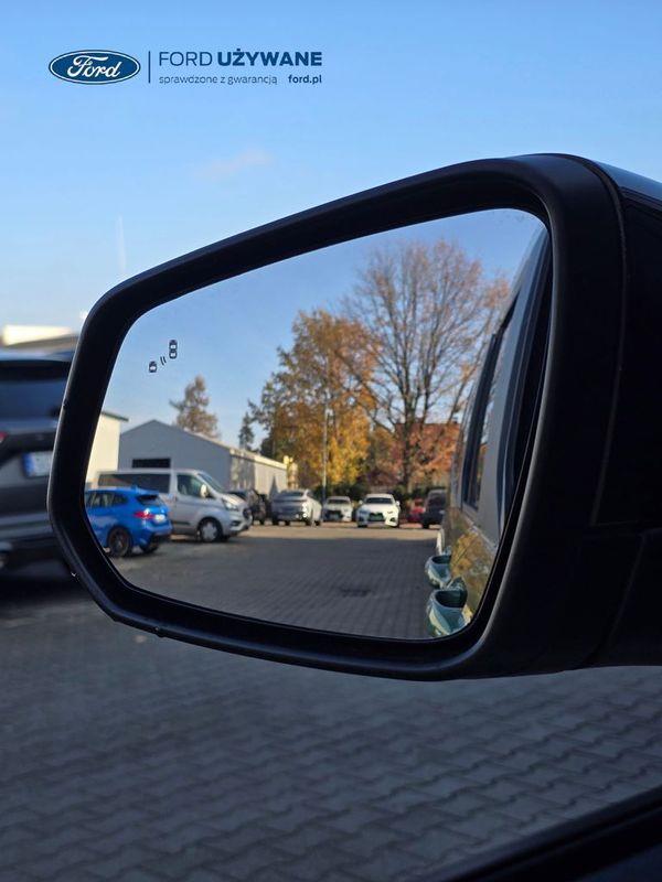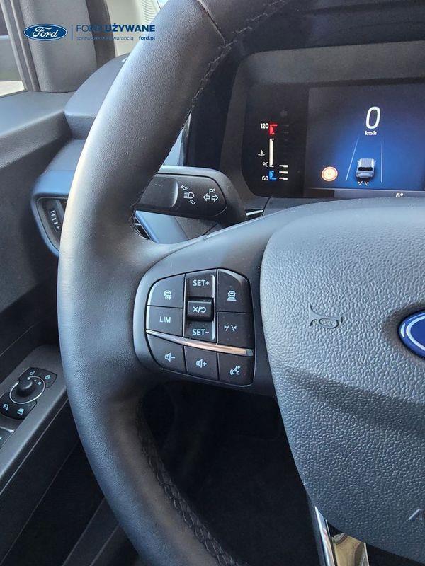 Wyposażenie standardowe wybrane elementy : Aktywna przesłona kraty wlotu powietrza Cyfrowy zestaw wskaźników Elektroniczny układ stabilizacji toru jazdy (ESC) – obejmuje ABS, układ kontroli trakcji (TCS), układ ułatwiający ruszanie pod górę (HSA), system kontroli ryzyka wywrócenia pojazdu (ARP) oraz elektroniczny system rozdziału sił hamowania (EBD) Elektryczny układ wspomagania kierownicy (EPAS) Funkcja automatycznego hamowania podczas cofania Funkcja ostrzegania o hamowaniu awaryjnym (EBW) Hamulce – przednie tarczowe, tylne bębnowe Inteligentny ogranicznik prekości Kamera cofania Komputer pokładowy Kurtyny powietrzne Poduszka powietrzna – kierowcy Poduszka powietrzna – boczna kierowcy Poduszka powietrzna – boczna pasażera Poduszka powietrzna – pasażera (obejmuje wyłącznik poduszki powietrznej pasażera) Przycisk rozrusznika FordPower Sygnalizacja niezapiętych pasów bezpieczeństwa dla kierowcy i pasażera Sygnalizacja niezapiętych pasów bezpieczeństwa dla pasażerów z tyłu System Auto-Start-Stop System e-Call System monitorowania ciśnienia w oponach (TPMS) System monitorowania koncentracji kierowcy System rozpoznawania znaków ograniczenia prędkości System zapobiegający kolizjom (kamera) z asystentem skrętu w lewo Środkowe światło STOP Tempomat adaptacyjny System nawigacji satelitarnej, radio cyfrowe FM/DAB, 8" kolorowy ekran dotykowy, Ford SYNC 4, bezprzewodwa obsługa Apple CarPlay i Android Auto, zestaw głośnomówiący Bluetooth® ze sterowaniem głosowym, gniazdo USB i 6 głośników Modem FordPass Connect Bezprzewodowa ładowarka Czujniki parkowania – przednie Czujniki parkowania – tylne Gniazdo zasilania – 2 x USB umieszczone w tablicy rozdzielczej Gniazdo zasilania 12V Klimatyzacja – manualna Kolumna kierownicy – z regulacją w dwóch płaszczyznach Koło kierownicy – wykończone materiałem Sensico (obejmuje przełączniki sterowania radioodbiornikiem na kierownicy) Konsola centralna Konsola podsufitowa Oświetlenie w kabinie – lampka w podsufitce oraz 2 lampki do czytania Schowek podręczny z pokrywą Szyby – przednie, sterowane elektrycznie z opuszczaniem i podnoszeniem za jednym przyciśnięciem po stronie kierowcy Uchwyt dźwigni zmiany biegów – wykończenie Sensico i srebrna wstawka Wewnętrzne klamki drzwi – wykończenie chromowane satynowe Wycieraczki przednie – automatyczne z czujnikiem deszczu Wykładzina podłogi – w kabinie - dywanowa Pakiet foteli przednich 11