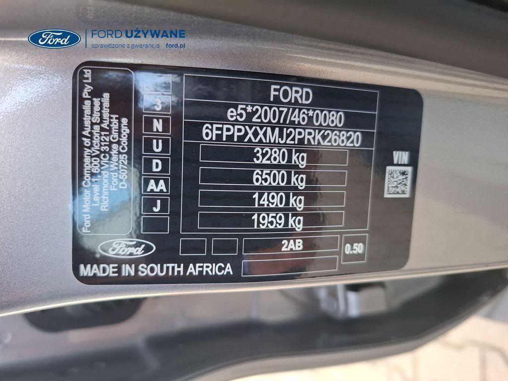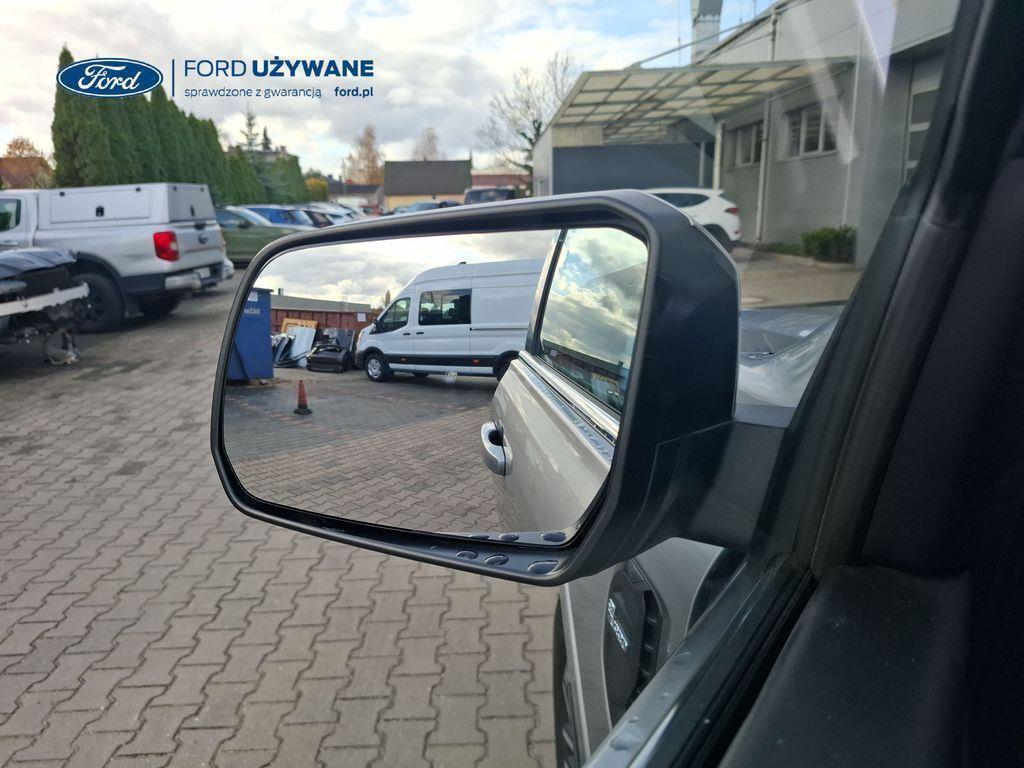 Wyposażenie standardowe wybrane elementy : 4-strefowe oświetlenie zewnętrzne 360° (wymaga systemu Auto Start-Stop) Bezkorkowy system tankowania Ford Easy Fuel (nie dotyczy wersji podwozie z kabiną) Cyfrowy zestaw wskaźników - wyświetlacz LCD 8" Czujniki parkowania - przód Elektroniczne wspomaganie siły hamowania, elektroniczny system stabilizacji toru jazdy (ESC) ze światłem hamowania awaryjnego1), asystent hamowania awaryjnego (EBA) adaptacyjny system kontroli obciążenia (LAC) system kontroli zjazdu ze wzniesienia, system wspomagania ruszania pod górę2), system zapobiegający kołysaniu się przyczepy oraz system kontroli ryzyka wywrócenia pojazdu (ROM) Elektryczny hamulec postojowy Ford KeyFree - system centralnego zamka z kluczem elektronicznym (umożliwia otwarcie drzwi i uruchomienie silnika bez tradycyjnego kluczyka; zawiera przycisk rozrusznika FordPower) Funkcja automatycznego hamowania po kolizji Funkcja automatycznego hamowania podczas cofania (czujniki) Inteligentny ogranicznik prędkości ISOFIX - tylne siedzenia Kamera cofania Podgrzewana przednia szyba „Quickclear” Poduszki powietrzne - boczne i kurtynowe Poduszki powietrzne - kierowcy i pasażera z przodu Poduszki powietrzne - poduszka boczna między przednimi fotelami Poduszki powietrzne - poduszka chroniąca kolana kierowcy System kontroli ciśnienia w oponach (TPMS) System kontroli pasa ruchu System rozpoznawania znaków drogowych System zapobiegający kolizjom Pre-Collision Assist (kamera i radar). Zawiera: