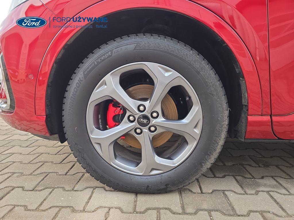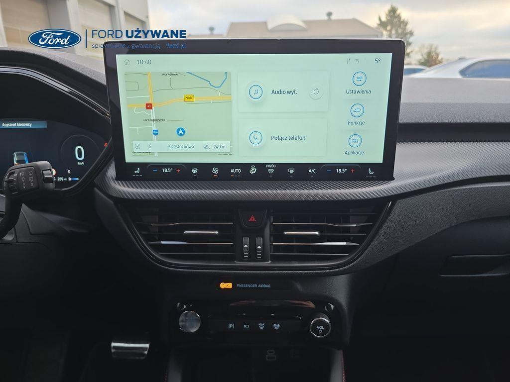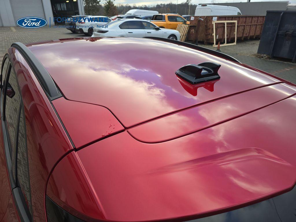 Driver Alert - system monitorowania koncentracji kierowcy Elektryczny hamulec postojowy z funkcją Auto Hold Inteligentny ogranicznik prędkości (ISA) Lane Keeping System (zawiera: Lane Keeping Aid, Lane Departure Warning, Road Departure Warning, Road Edge Detection) Pre-Collision Assist - działajacy w oparciu o informacje z kamery przedniej i radaru system wspomagający kierowcę w unikaniu lub zmniejszaniu skutków kolizji z poprzedzającymi pojazdami, pieszymi lub rowerzystami (zawiera: AEB - Autonomous Emergency Braking z Intersection Assist, ESA - Evasive Steering Assist, DA/DI-Distance Alert/ Distance IndicationSystem monitorowania ciśnienia w oponach System rozpoznawania znaków ograniczenia prędkości System ABS z elektronicznym układem podziału siły hamowania (EBD) i systemem stabilizacji toru jazdy (ESP) Komputer pokładowy Radioodtwarzacz z SYNC 4, DAB+, nawigacją satelitarną i systemem audio premium B&O – kolorowy wyświetlacz dotykowy 13.2", bezprzewodowa obsługa Apple CarPlay i Android Auto (wymaga kompatybilnego telefonu), zestaw głośnomówiący z Bluetooth®, obsługa głosowa w języku polskim, system nagłośnienia B&O (9 głośników + subwoofer), gniazdo USB, zdalne sterowanie na kierownicy Wyświetlacz na tablicy zegarów - 12.3" kolorowy Klimatyzacja - dwustrefowa z automatyczną regulacją temperatury Adaptive Cruise Control z funkcją Stop & Go i Lane Centring - tempomat adaptacyjny z funkcją utrzymania pojazdu pośrodku pasa ruchu oraz funkcją automatycznego zatrzymania i ponownego rozpoczęcia jazdy Bezprzewodowa ładowarka do smartfonów Kolumna kierownicy – z regulacją pochylenia i odległości Przednie fotele - ergonomiczne, z certyfikatem AGR, z regulacją położenia w 18. kierunkach Tylna kanapa – przesuwana Tylna kanapa – składana, dzielona w proporcji 60:40, z regulacją pochylenia oparć Gniazdko 12V w bagażniku Ford KeyFree - system centralnego zamka z kluczem elektronicznym Immobilizer System wyboru trybu jazdy Zawieszenie - o zwiększonym prześwicie (+ 10 mm z przodu/+ 5 mm z tyłu) Blind Spot Assist (system monitorowania martwego pola widzenia w lusterkach z funkcją zapobiegania kolizji z pojazdem w martwym polu widzenia) z Cross Traffic Alert (CTA) (funkcja ostrzegania o pojazdach nadjeżdżających z prawej lub lewej strony, podczas manewru wyjazdu tyłem z miejsca parkingowego). Dach lakierowany w kolorze czarnym Dodatkowo przyciemniane szyby – w tylnej części nadwozia Lusterka boczne - obudowy lakierowane w kolorze czarnym Lusterka boczne – sterowane, podgrzewane i składane elektrycznie, z lampkami oświetlającymi podłoże i funkcją pamięci położenia Relingi bagażnika dachowego – z wykończeniem w kolorze czarnym Active Park Assist 2 - system automatycznego parkowania równoległego i prostopadłego oraz wyjazdu z równoległego miejsca Auto High Beam - system automatycznego sterowania światłami drogowymi Czujniki parkowania – z tyłu i z przodu Drzwi bagażnika – zamykane/ otwierane elektrycznie i bezdotykowo Przednie światła przeciwmgielne z funkcją doświetlania zakrętów Reflektory - Full LED, statyczne Reflektory automatyczne – włączające się automatycznie w zależności od poziomu natężenia światła Pakiet Driver Assistance