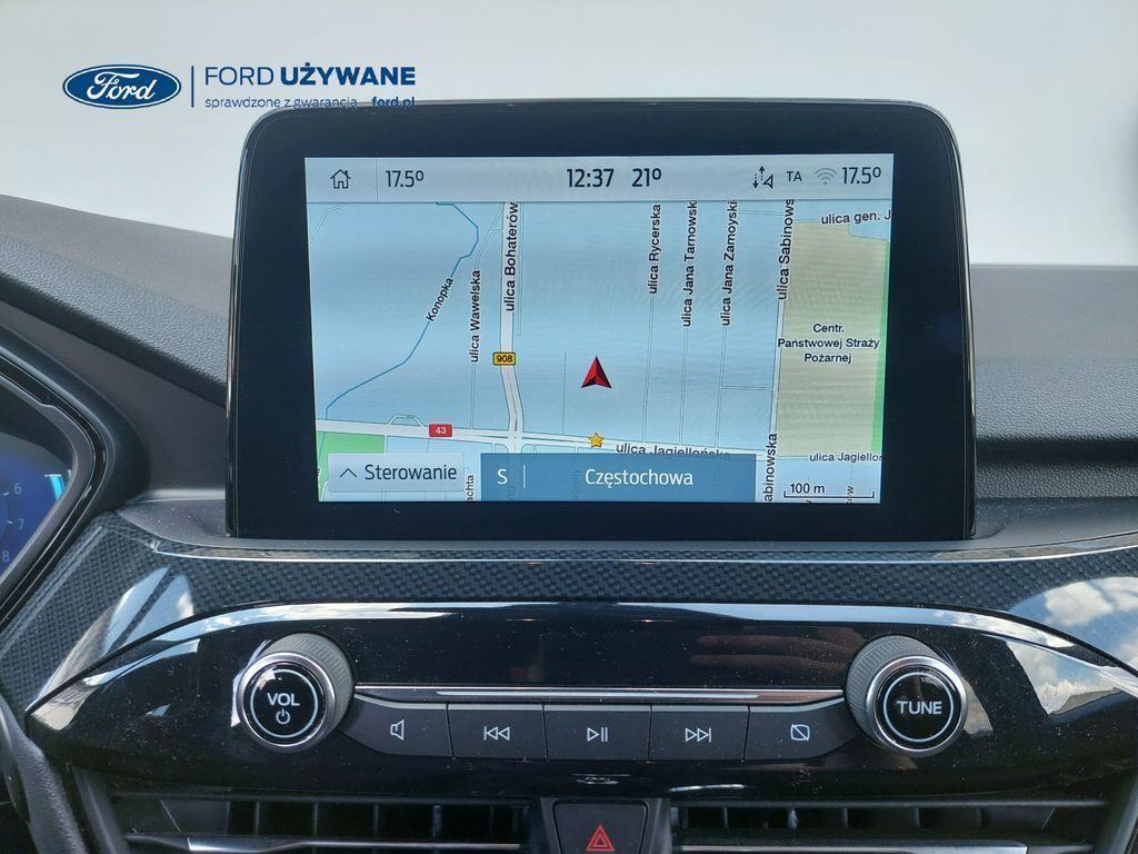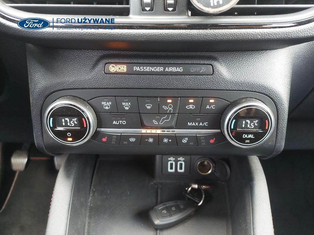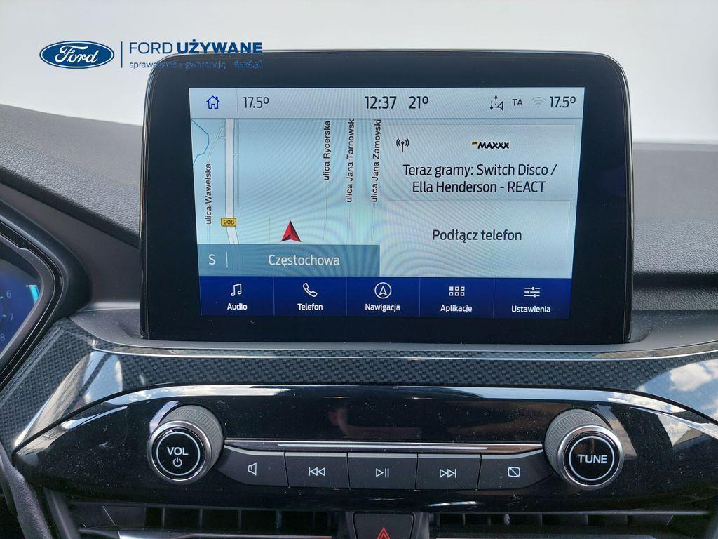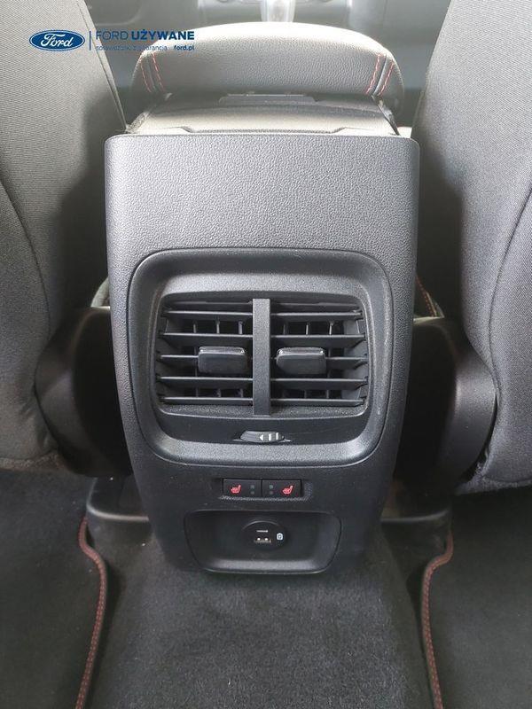 Wyposażenie standardowe wybrane elementy : *Elektroniczny układ stabilizacji toru jazdy (ESC) – z układem poprawiającym stabilność na zakrętach (TVC), układem ułatwiającym ruszanie na wzniesieniach (HSA) *Elektryczny hamulec postojowy *Hamulec pokolizyjny *ISOFIX *Lane Keeping Alert (zawiera: Lane Keeping Aid (system wspomagający utrzymanie pojazdu na pasie ruchu, z funkcją wykrywania krawędzi jezdni) *Pre-Collision Assist - działajacy w oparciu o informacje z kamery przedniej system wspomagający kierowcę w unikaniu lub zmniejszaniu skutków kolizji z poprzedzającymi pojazdami, pieszymi lub rowerzystami do prędkości maksymalnej pojazdu 120 km/h *Centralny zamek – sterowany pilotem *Ford KeyFree - system centralnego zamka z kluczem elektronicznym *FordPass Connect z modemem GSM *Radioodtwarzacz z SYNC 3, DAB+ i nawigacją satelitarną – kolorowy wyświetlacz dotykowy 8", Applink 3.0, Apple CarPlay, Android Auto, TMC (informacja o ruchu drogowym), zestaw głośnomówiący z Bluetooth® i rozbudowaną funkcją sterowania głosem w języku polskim oraz funkcją wzywania pomocy, 6 głośników, gniazdo USB, zdalne sterowanie na kierownicy, mapy Europy z widokiem 3D, menu tekstowe w języku polskim, komunikaty głosowe i menu tekstowe nawigacji w języku polskim *Klimatyzacja - dwustrefowa z automatyczną regulacją temperatury *Kolumna kierownicy – z regulacją pochylenia i odległości *Podsufitka - w ciemnej tonacji *Ford MyKey® – funkcja programowania i przypisania do kluczyka ograniczenia: prędkości maksymalnej, maksymalnej głośności systemu audio oraz możliwość zablokowania deaktywacji systemów wspomagających bezpieczeństwo *Konsola centralna - gniazda USB oraz USB-C z tyłu konsoli *Lusterko wsteczne – automatycznie ściemniające się *Oświetlenie wnętrza – lampki do czytania map z przodu i z tyłu *Oświetlenie wnętrza – diodami LED z elementami nastrojowego oświetlenia *Przycisk rozrusznika – Ford Power *Szyby – elektrycznie sterowane szyby przednich i tylnych drzwi - opuszczanie i podnoszenie jednym naciśnięciem przycisku *Fotele – styl sportowy, tapicerka materiałowa ciemna Foundry/Eton ręczna regulacja podparcia odcinka lędźwiowego fotela kierowcy i pasażera) *Fotele kierowcy i pasażera – kieszenie na mapy z tyłu oparć przednich foteli *Tylna kanapa – przesuwana, składana, dzielona w proporcji 60:40, z regulacją pochylenia oparć *Elastyczna osłona przestrzeni bagażowej – mocowana za 2. rzędem siedzeń *Gniazdko 12V w bagażniku *Układ kierowniczy – ze wspomaganiem elektrycznym *System wyboru trybu jazdy *Obręcze kół ze stopów lekkich – 18", z wykończeniem w kolorze Rock Metallic, ogumienie 225/60 *Pakiet stylizacyjny nadwozia ST-Line - stylizowane zderzaki, profilowane nakładki na nadkola lakierowane w kolorze nadwozia, listwy progowe i listwy boczne nadwozia lakierowane w kolorze nadwozia *Tylny spojler *Czujniki parkowania – z tyłu i z przodu *Kamera ułatwiająca parkowanie - z tyłu *Reflektory - światla przeciwmgielne LED *Reflektory – ze światłami mijania LED oraz światłami do jazdy dziennej LED *Reflektory automatyczne – włączające się automatycznie w zależności od poziomu natężenia światła ───────────────────────────────────────────────────────────── Samochód sprzedawany przez Autoryzowanego Dealera Marki Ford. Frank-Cars Częstochowa, ul. Jagiellońska 147/151