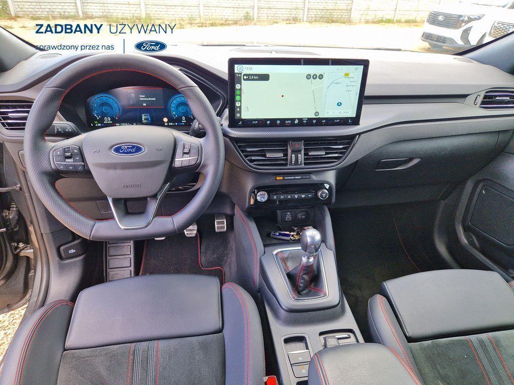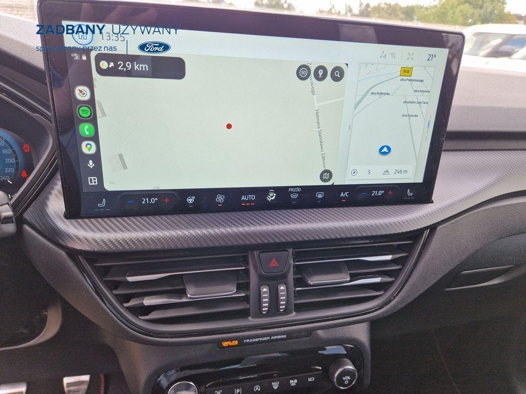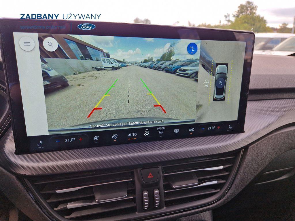 Driver Alert - system monitorowania koncentracji kierowcy Elektryczny hamulec postojowy z funkcją Auto Hold Inteligentny ogranicznik prędkości (ISA) Lane Keeping System (zawiera: Lane Keeping Aid, Lane Departure Warning, Road Departure Warning, Road Edge Detection) Pre-Collision Assist - działajacy w oparciu o informacje z kamery przedniej i radaru system wspomagający kierowcę w unikaniu lub zmniejszaniu skutków kolizji z poprzedzającymi pojazdami, pieszymi lub rowerzystami (zawiera: AEB - Autonomous Emergency Braking z Intersection Assist, ESA - Evasive Steering Assist, DA/DI-Distance Alert/ Distance IndicationSystem monitorowania ciśnienia w oponach System rozpoznawania znaków ograniczenia prędkości System ABS z elektronicznym układem podziału siły hamowania (EBD) i systemem stabilizacji toru jazdy (ESP) Komputer pokładowy Radioodtwarzacz z SYNC 4, DAB+, nawigacją satelitarną i systemem audio premium B&O – kolorowy wyświetlacz dotykowy 13.2", bezprzewodowa obsługa Apple CarPlay i Android Auto (wymaga kompatybilnego telefonu), zestaw głośnomówiący z Bluetooth®, obsługa głosowa w języku polskim, system nagłośnienia B&O (9 głośników + subwoofer), gniazdo USB, zdalne sterowanie na kierownicy Wyświetlacz na tablicy zegarów - 12.3" kolorowy Klimatyzacja - dwustrefowa z automatyczną regulacją temperatury Adaptive Cruise Control z funkcją Stop & Go i Lane Centring - tempomat adaptacyjny z funkcją utrzymania pojazdu pośrodku pasa ruchu oraz funkcją automatycznego zatrzymania i ponownego rozpoczęcia jazdy Bezprzewodowa ładowarka do smartfonów Kolumna kierownicy – z regulacją pochylenia i odległości Przednie fotele - ergonomiczne, z certyfikatem AGR, z regulacją położenia w 18. kierunkach Tylna kanapa – przesuwana Tylna kanapa – składana, dzielona w proporcji 60:40, z regulacją pochylenia oparć Gniazdko 12V w bagażniku Ford KeyFree - system centralnego zamka z kluczem elektronicznym Immobilizer System wyboru trybu jazdy Zawieszenie - o zwiększonym prześwicie (+ 10 mm z przodu/+ 5 mm z tyłu) Blind Spot Assist (system monitorowania martwego pola widzenia w lusterkach z funkcją zapobiegania kolizji z pojazdem w martwym polu widzenia) z Cross Traffic Alert (CTA) (funkcja ostrzegania o pojazdach nadjeżdżających z prawej lub lewej strony, podczas manewru wyjazdu tyłem z miejsca parkingowego). Dach lakierowany w kolorze czarnym Dodatkowo przyciemniane szyby – w tylnej części nadwozia Lusterka boczne - obudowy lakierowane w kolorze czarnym Lusterka boczne – sterowane, podgrzewane i składane elektrycznie, z lampkami oświetlającymi podłoże i funkcją pamięci położenia Relingi bagażnika dachowego – z wykończeniem w kolorze czarnym Active Park Assist 2 - system automatycznego parkowania równoległego i prostopadłego oraz wyjazdu z równoległego miejsca Auto High Beam - system automatycznego sterowania światłami drogowymi Czujniki parkowania – z tyłu i z przodu Drzwi bagażnika – zamykane/ otwierane elektrycznie i bezdotykowo Przednie światła przeciwmgielne z funkcją doświetlania zakrętów Reflektory - Full LED, statyczne Reflektory automatyczne – włączające się automatycznie w zależności od poziomu natężenia światła Pakiet Driver Assistance