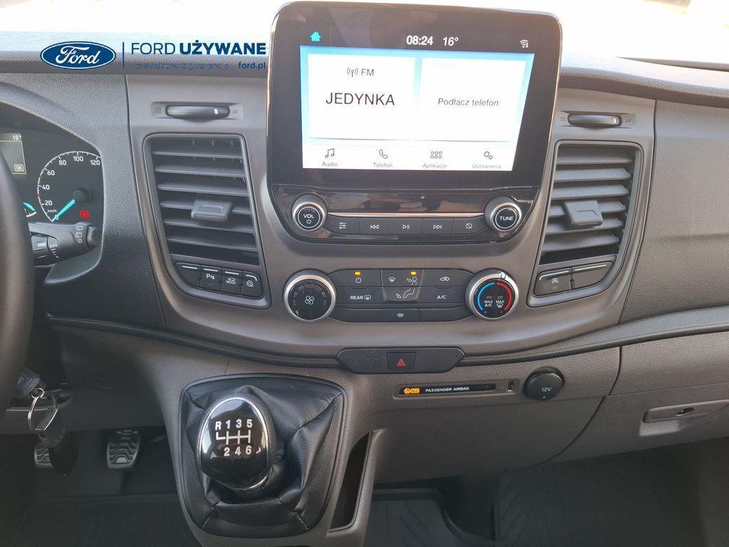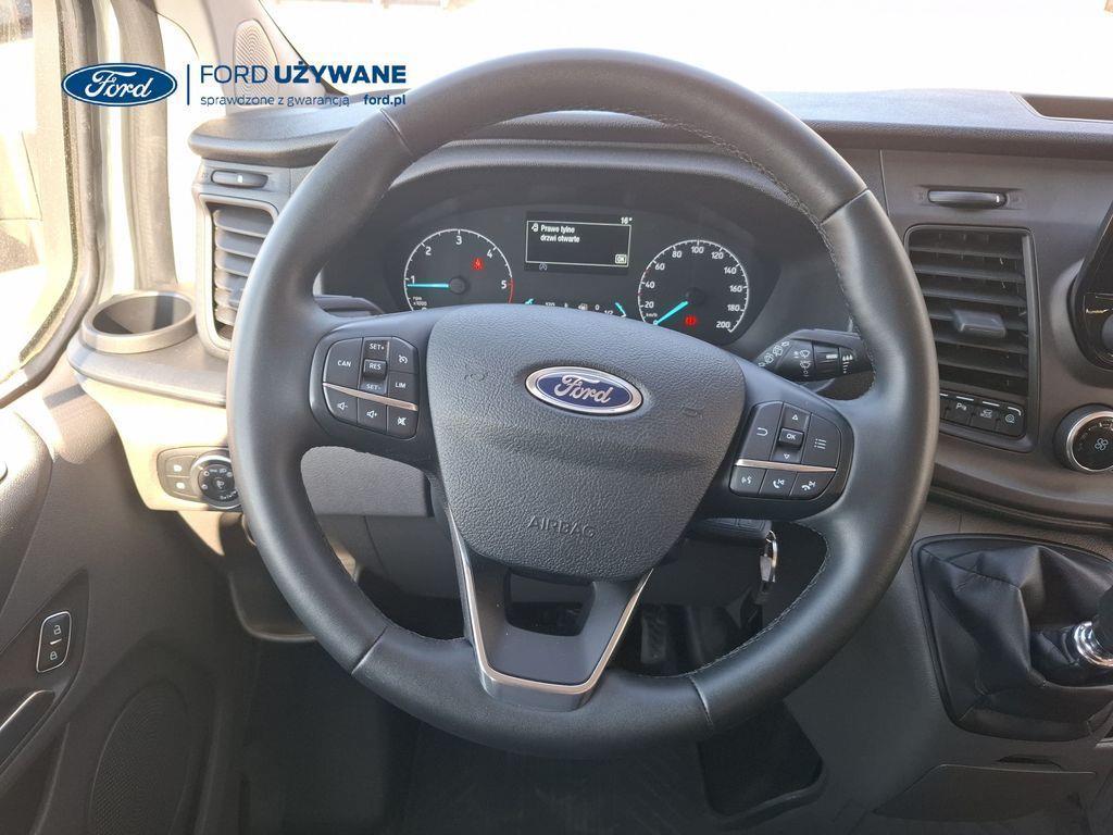 ─────────────────────────────────────────────────────────────── Wyposażenie: Akumulator – pojedynczy (z przygotowaniem do rozruchu do -20°C) Alternator – wzmocniony (240A) Elektroniczny układ stabilizacji toru jazdy (ESC) Elektryczny układ wspomagania kierownicy (EPAS) Funkcja monitorowania stanu pojazdu Komputer pokładowy – zasięg na paliwie w zbiorniku, chwilowe i średnie zużycie paliwa, średnia prędkość, temperatura zewnętrzna Lusterka boczne – elektrycznie sterowane i podgrzewane Poduszka powietrzna – kierowcy System kontroli obciążenia pojazdu (LAC) System tankowania bez korka wlewu „Ford Easy Fuel” z zabezpieczeniem przed wlaniem niewłaściwego paliwa System zapobiegający blokowaniu kół (ABS) z elektronicznym systemem rozdziału sił hamowania (EBD) System zapobiegający wywróceniu pojazdu Roll Stability Control (RSC) Szyby – elektrycznie sterowane szyby przednich drzwi z funkcją otwierania szyby po stronie kierowcy jednym naciśnięciem przycisku Układ ułatwiający ruszanie pod górę (HSA) Układ wspomagania awaryjnego hamowania (EBA) Zbiornik AdBlue® – 21 litrów Zbiornik paliwa – 70 litrów Modem FordPass Connect Radio cyfrowe DAB , kolorowy wyświetlacz TFT, zestaw głośnomówiący bluetooth, gniazdo USB, sterowanie z kierownicy, 4 głośniki Czujniki parkowania – z przodu i z tyłu pojazdu Gniazdo zasilania – 2 x 12V Kierownica – wykończona skórą Klimatyzacja – z przodu pojazdu Kolumna kierownicy – z regulacją w dwóch płaszczyznach Oświetlenie – w tylnej części z funkcją stopniowego wygaszania (nie dotyczy Vana) Oświetlenie w kabinie – lampki do czytania w podsufitce Podsufitka – kabina pasażerska, profilowana Półka podsufitowa w kabinie (tylko Van) Schowek – kieszenie na mapy w przednich drzwiach Schowek – po stronie kierowcy, w górnej części deski rozdzielczej - otwarty Schowek – po stronie pasażera, w górnej części deski rozdzielczej - otwarty Schowek – pod siedzeniem pasażera (tylko pod podwójnym siedzeniem pasażera) Schowek po stronie pasażera – zamykany Tempomat Uchwyt na butelki – podwójny, zamontowany w desce rozdzielczej Wykładzina podłogi – w kabinie – gumowa, łatwa w czyszczeniu Zawieszenie - przednie niezależne kolumny MacPhersona, regulowane sprężyny, stabilizator i amortyzatory gazowe. Tył, resory piórowe i amortyzatory gazowe ISOFIX – mocowania fotelika dziecięcego – 2 mocowania w drugim rzędzie Pakiet foteli przednich 13