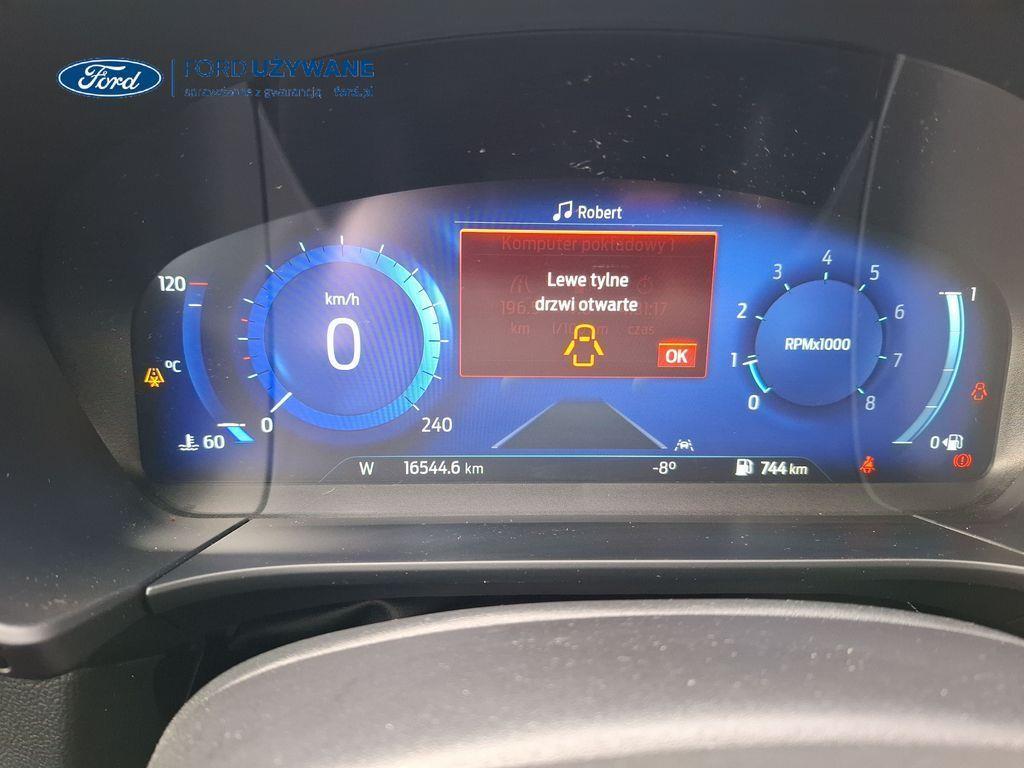 Wyposażenie standardowe wybrane elementy : *Elektroniczny układ stabilizacji toru jazdy (ESC) – z układem poprawiającym stabilność na zakrętach (TVC), układem ułatwiającym ruszanie na wzniesieniach (HSA) *Elektryczny hamulec postojowy *Hamulec pokolizyjny *ISOFIX *Lane Keeping Alert (zawiera: Lane Keeping Aid (system wspomagający utrzymanie pojazdu na pasie ruchu, z funkcją wykrywania krawędzi jezdni) *Pre-Collision Assist - działajacy w oparciu o informacje z kamery przedniej system wspomagający kierowcę w unikaniu lub zmniejszaniu skutków kolizji z poprzedzającymi pojazdami, pieszymi lub rowerzystami do prędkości maksymalnej pojazdu 120 km/h *Centralny zamek – sterowany pilotem *Ford KeyFree - system centralnego zamka z kluczem elektronicznym *FordPass Connect z modemem GSM *Radioodtwarzacz z SYNC 3, DAB+ i nawigacją satelitarną – kolorowy wyświetlacz dotykowy 8", Applink 3.0, Apple CarPlay, Android Auto, TMC (informacja o ruchu drogowym), zestaw głośnomówiący z Bluetooth® i rozbudowaną funkcją sterowania głosem w języku polskim oraz funkcją wzywania pomocy, 6 głośników, gniazdo USB, zdalne sterowanie na kierownicy, mapy Europy z widokiem 3D, menu tekstowe w języku polskim, komunikaty głosowe i menu tekstowe nawigacji w języku polskim *Klimatyzacja - dwustrefowa z automatyczną regulacją temperatury *Kolumna kierownicy – z regulacją pochylenia i odległości *Podsufitka - w ciemnej tonacji *Bezprzewodowa ładowarka do smartfonów (wymaga smartfona kompatybilnego z systemem ładowania bezprzewodowego) *Ford MyKey® – funkcja programowania i przypisania do kluczyka ograniczenia: prędkości maksymalnej, maksymalnej głośności systemu audio oraz możliwość zablokowania deaktywacji systemów wspomagających bezpieczeństwo *Konsola centralna - gniazda USB oraz USB-C z tyłu konsoli *Lusterko wsteczne – automatycznie ściemniające się *Oświetlenie wnętrza – lampki do czytania map z przodu i z tyłu *Oświetlenie wnętrza – diodami LED z elementami nastrojowego oświetlenia *Przycisk rozrusznika – Ford Power *Szyby – elektrycznie sterowane szyby przednich i tylnych drzwi - opuszczanie i podnoszenie jednym naciśnięciem przycisku *Fotele – styl sportowy, tapicerka materiałowa ciemna Foundry/Eton ręczna regulacja podparcia odcinka lędźwiowego fotela kierowcy i pasażera) *Fotele kierowcy i pasażera – kieszenie na mapy z tyłu oparć przednich foteli *Tylna kanapa – przesuwana, składana, dzielona w proporcji 60:40, z regulacją pochylenia oparć *Elastyczna osłona przestrzeni bagażowej – mocowana za 2. rzędem siedzeń *Gniazdko 12V w bagażniku *Układ kierowniczy – ze wspomaganiem elektrycznym *System wyboru trybu jazdy *Obręcze kół ze stopów lekkich – 18", z wykończeniem w kolorze Rock Metallic, ogumienie 225/60 *Pakiet stylizacyjny nadwozia ST-Line - stylizowane zderzaki, profilowane nakładki na nadkola lakierowane w kolorze nadwozia, listwy progowe i listwy boczne nadwozia lakierowane w kolorze nadwozia *Tylny spojler *Czujniki parkowania – z tyłu i z przodu *Kamera ułatwiająca parkowanie - z tyłu *Reflektory - światla przeciwmgielne LED *Reflektory – ze światłami mijania LED oraz światłami do jazdy dziennej LED *Reflektory automatyczne – włączające się automatycznie w zależności od poziomu natężenia światła ───────────────────────────────────────────────────────────── Samochód sprzedawany przez Autoryzowanego Dealera Marki Ford. Frank-Cars Częstochowa, ul. Jagiellońska 147/151