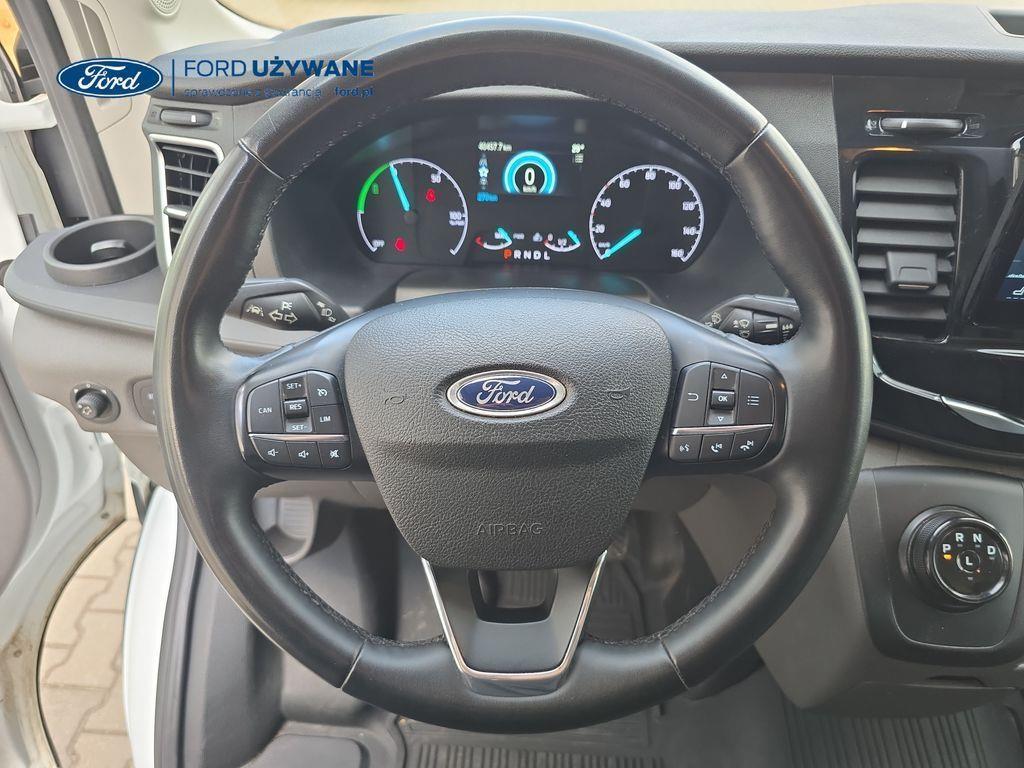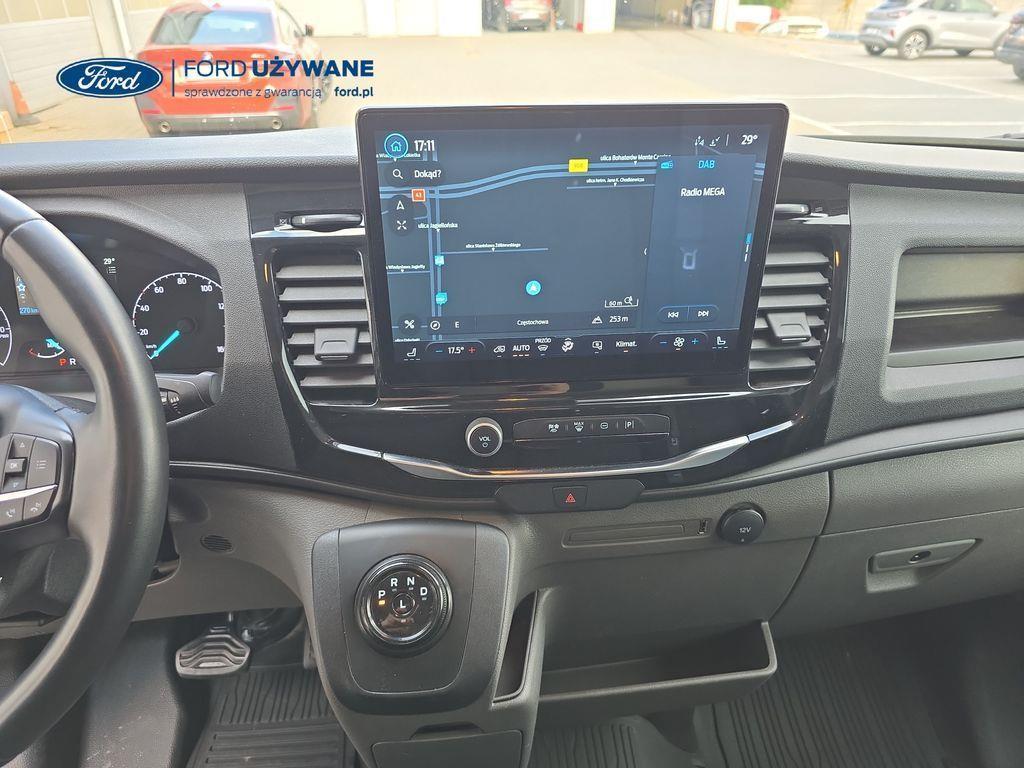 ─────────────────────────────────────────────────────────────── Wyposażenie standardowe wybrane elementy : Collision Mitigation System - system zapobiegania kolizjom z funkcją automatycznego hamowania. Czujniki parkowania – przednie i tylne Elektroniczny układ stabilizacji toru jazdy (ESC) Funkcja ostrzegania o hamowaniu awaryjnym Funkcja wyboru trybu jazdy Hamulce tarczowe z przodu i z tyłu Hamulec ręczny - elektryczny Kabel do ładownia ze złączem trójfazowym - długość 8m Komputer pokładowy (zasięg na paliwie w zbiorniku, chwilowe i średnie zużycie paliwa, średnia prędkość, temperatura zewnętrzna) LKA - Lane Keeping Aid - system kontroli pasa ruchuLKW - Lane Keeping Warning - system ostrzegania przed niezamierzonym zjechaniem z pasa ruchu Lusterka boczne – elektrycznie sterowane i podgrzewane Ogranicznik prędkości do 130 km/h Podgrzewana przednia szyba „Quickclear” Poduszka powietrzna – kierowcy System ABS z elektronicznym systemem podziału siły hamowania (EBD) System kontroli obciążenia pojazdu (LAC) System kontroli ryzyka wywrócenia pojazdu (RSC) Szyby – elektrycznie sterowane szyby przednich drzwi z funkcją otwierania szyby po stronie kierowcy jednym naciśnięciem przycisku Tempomat Układ poprawiający stabilność na zakrętach (CC) Układ ułatwiający ruszanie pod górę (HSA) Układ wspomagania awaryjnego hamowania (EBA) Wycieraczki – przedniej szyby – automatyczne z czujnikiem deszczu Modem FordPass Connect Nawigacja satelitarna z systemem multimedialny SYNC 4 i radiem cyfrowym DAB, kolorowy wyświetlacz dotykowy 12", zestaw głośnomówiący Bluetooth, funkcja wzywania pomocy, sterowanie głosowe, Android Auto i Apple CarPlay, gniazdo USB, sterowanie z kierownicy, 4 głośniki. Dostępny w pakiecie z automatyczną klimatyzacją i w pakietach Driver Assistance Kierownica – Premium Klimatyzacja – z przodu pojazdu, automatyczna EATC Kolumna kierownicy – z regulacją w dwóch płaszczyznach Konsola podsufitowa Oświetlenie przedziału ładunkowego Oświetlenie w kabinie – lampki w podsufitce, z funkcją stopniowego wygaszania oraz lampki do czytania map Podsufitka – w kabinie – formowana Przednie zawieszenie – niezależne kolumny MacPhersona, regulowane sprężyny, stabilizator i amortyzatory gazowe Przycisk rozrusznika FordPower Schowek podręczny – z drzwiczkami, zamykany na zamek, mieszczący teczki formatu A4 Tylne zawieszenie - wielowahaczowe Wykładzina podłogi – w kabinie – gumowa, łatwa w czyszczeniu Funkcja przypominająca o konieczności zapięcia pasów bezpieczeństwa Pakiet foteli przednich 15