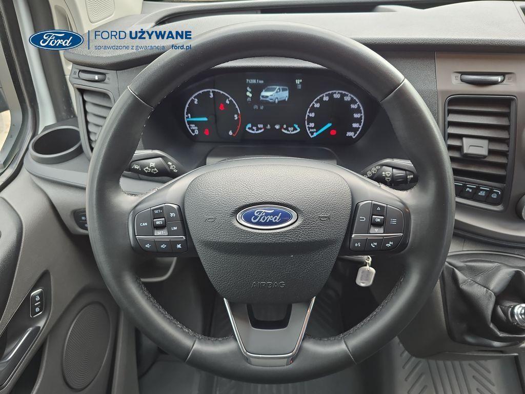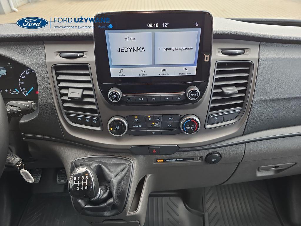 ─────────────────────────────────────────────────────────────── Wyposażenie: Akumulator – pojedynczy (z przygotowaniem do rozruchu do -20°C) Alternator – wzmocniony (240A) Elektroniczny układ stabilizacji toru jazdy (ESC) Elektryczny układ wspomagania kierownicy (EPAS) Funkcja monitorowania stanu pojazdu Komputer pokładowy – zasięg na paliwie w zbiorniku, chwilowe i średnie zużycie paliwa, średnia prędkość, temperatura zewnętrzna Lusterka boczne – elektrycznie sterowane i podgrzewane Poduszka powietrzna – kierowcy System kontroli obciążenia pojazdu (LAC) System tankowania bez korka wlewu „Ford Easy Fuel” z zabezpieczeniem przed wlaniem niewłaściwego paliwa System zapobiegający blokowaniu kół (ABS) z elektronicznym systemem rozdziału sił hamowania (EBD) System zapobiegający wywróceniu pojazdu Roll Stability Control (RSC) Szyby – elektrycznie sterowane szyby przednich drzwi z funkcją otwierania szyby po stronie kierowcy jednym naciśnięciem przycisku Układ ułatwiający ruszanie pod górę (HSA) Układ wspomagania awaryjnego hamowania (EBA) Zbiornik AdBlue® – 21 litrów Zbiornik paliwa – 70 litrów Modem FordPass Connect Radio cyfrowe DAB , kolorowy wyświetlacz TFT, zestaw głośnomówiący bluetooth, gniazdo USB, sterowanie z kierownicy, 4 głośniki Czujniki parkowania – z przodu i z tyłu pojazdu Gniazdo zasilania – 2 x 12V Kierownica – wykończona skórą Klimatyzacja – z przodu pojazdu Kolumna kierownicy – z regulacją w dwóch płaszczyznach Oświetlenie – w tylnej części z funkcją stopniowego wygaszania (nie dotyczy Vana) Oświetlenie w kabinie – lampki do czytania w podsufitce Podsufitka – kabina pasażerska, profilowana Półka podsufitowa w kabinie (tylko Van) Schowek – kieszenie na mapy w przednich drzwiach Schowek – po stronie kierowcy, w górnej części deski rozdzielczej - otwarty Schowek – po stronie pasażera, w górnej części deski rozdzielczej - otwarty Schowek – pod siedzeniem pasażera (tylko pod podwójnym siedzeniem pasażera) Schowek po stronie pasażera – zamykany Tempomat Uchwyt na butelki – podwójny, zamontowany w desce rozdzielczej Wykładzina podłogi – w kabinie – gumowa, łatwa w czyszczeniu Zawieszenie - przednie niezależne kolumny MacPhersona, regulowane sprężyny, stabilizator i amortyzatory gazowe. Tył, resory piórowe i amortyzatory gazowe ISOFIX – mocowania fotelika dziecięcego – 2 mocowania w drugim rzędzie Pakiet foteli przednich 13
