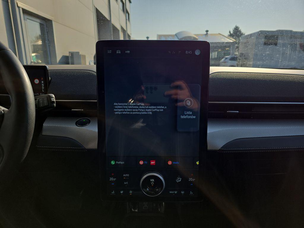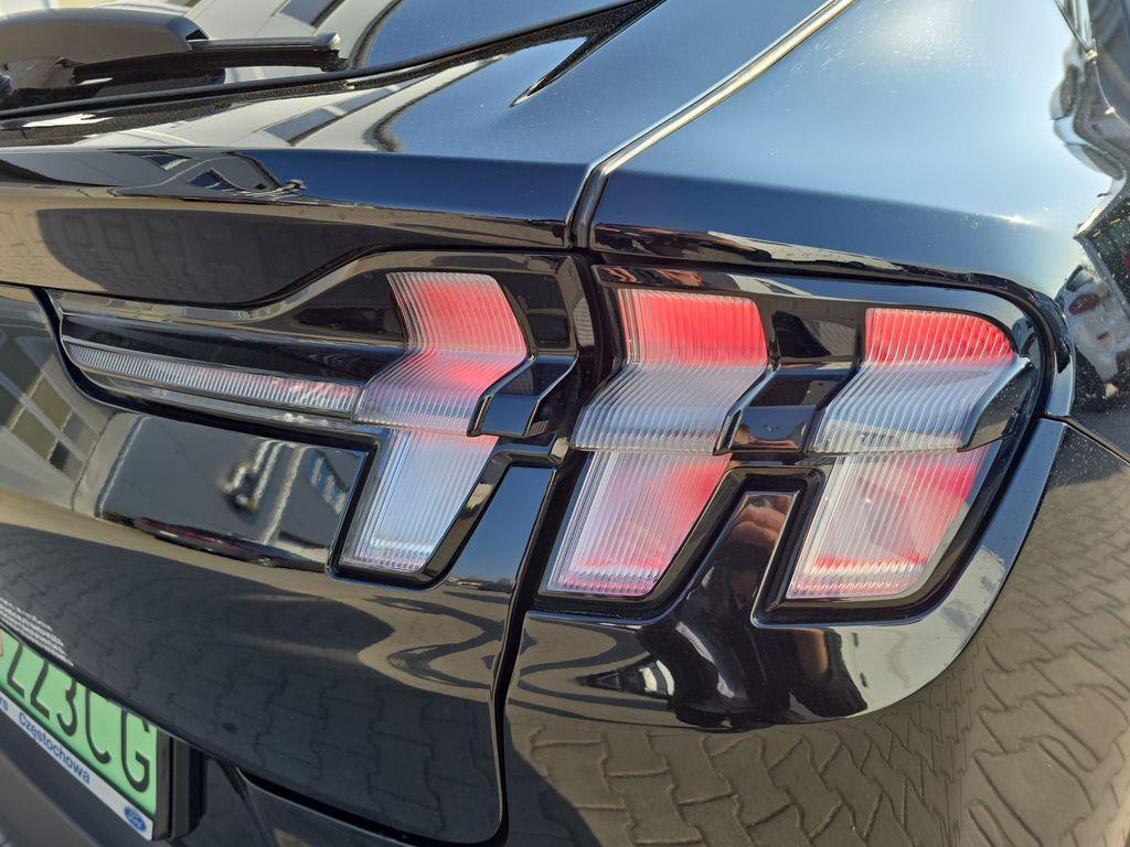Blind Spot Information (system monitorowania martwego pola widzenia w lusterkach) z Cross Traffic Alert (CTA) (funkcja ostrzegania o pojazdach nadjeżdżających z prawej lub lewej strony, podczas manewru wyjazdu tyłem z miejsca parkingowego). Driver Alert - system monitorowania koncentracji kierowcy Inteligentny ogranicznik prędkości Lane Keeping Alert (zawiera: Lane Keeping Aid (system wspomagający utrzymanie pojazdu na pasie ruchu, z funkcją wykrywania krawędzi jezdni) Pre-Collision Assist - działajacy w oparciu o informacje z kamery przedniej i radaru system wspomagający kierowcę w unikaniu lub zmniejszaniu skutków kolizji z poprzedzającymi pojazdami, pieszymi lub rowerzystami do prędkości maksymalnej pojazdu 180 km/h (zawiera: Forward Collision Warning, Dynamic Brake Support, Automated Emergency Braking, Distance Alert, Distance Indicator, Evasive Steering Assist, Intersectin Assist) System rozpoznawania znaków ograniczenia prędkości Ford KeyFree - system centralnego zamka z kluczem elektronicznym One Pedal Driving - system sterowania jednym pedałem FordPass Connect z modemem GSM - zawiera: zdalne zamykanie/otwieranie zamków drzwi, funkcję lokalizacji pojazdu, status systemów pokładowych, informację o ruchu drogowym przez kanał GSM (live Traffic), aktualizację map nawigacji przez Wi-Fi, zdalne uruchamianie pojazdu Radioodtwarzacz z SYNC 4A, DAB+ i nawigacją satelitarną – kolorowy wyświetlacz dotykowy 15.5", Apple CarPlay, Android Auto, TMC (informacja o ruchu drogowym zestaw głośnomówiący z Bluetooth® z funkcją sterowania głosem w języku polskim oraz funkcją wzywania pomocy, 6 głośników, zdalne sterowanie na kierownicy, mapy Europy z widokiem 3D, menu tekstowe w języku polskim, komunikaty głosowe i menu tekstowe nawigacji w języku polskim Wyświetlacz na tablicy zegarów - 10.2" kolorowy, cyfrowy Klimatyzacja - dwustrefowa z automatyczną regulacją temperatury Nawiewy na drugi rząd siedzeń Przewód do ładowania na publicznych stacjach ładowania pradu zmiennego eShifter - pokrętło do wyboru trybu jazdy Kierownica - podgrzewana Adaptive Cruise Control z funkcją Stop & Go i Lane Centring - tempomat adaptacyjny z funkcją utrzymania pojazdu na środku pasa ruchu oraz funkcją automatycznego zatrzymania i ponownego rozpoczęcia jazdy oraz funkcja utrzymania pośrodku pasa ruchu Bezprzewodowa ładowarka do smartfonów Lusterko wsteczne – automatycznie ściemniające się Fotel kierowcy – ręczna regulacja położenia w 6. kierunkach Fotel pasażera – ręczna regulacja położenia w 6. kierunkach Fotele – styl sportowy, tapicerka ze skóry ekologicznej Sensico (3ESSJ) Przednie fotele – podgrzewane Gniazdko 12V w bagażniku Osłona przestrzeni bagażowej - mocowana do drzwi bagażnika Obręcze kół ze stopów lekkich – 18", wzór 5-ramiennym, ogumienie 225/60 Zestaw naprawczy ogumienia Antena dachowa w kształcie płetwy rekina Dodatkowo przyciemniane szyby – w tylnej części nadwozia Lusterka boczne – sterowane i podgrzewane elektrycznie, z wbudowanymi kierunkowskazami i lampkami oświetlajacymi podłoże Tylny spojler Przednia szyba – podgrzewana Reflektory - w technologii LED Reflektory automatyczne – włączające się automatycznie w zależności od poziomu natężenia światła z systemem automatycznego sterowania światłami drogowymi Auto High Beam Tylne światła w technologii LED