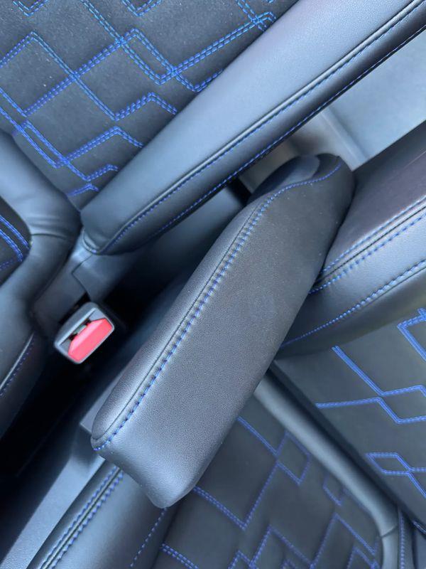 Pakiet siedzeń 34 - tapicerka ciemna MS-RT wykonana z eko-skóry i zamszu z niebieskimi przeszyciami, układ foteli przednich 1+2, regulacja elektryczna