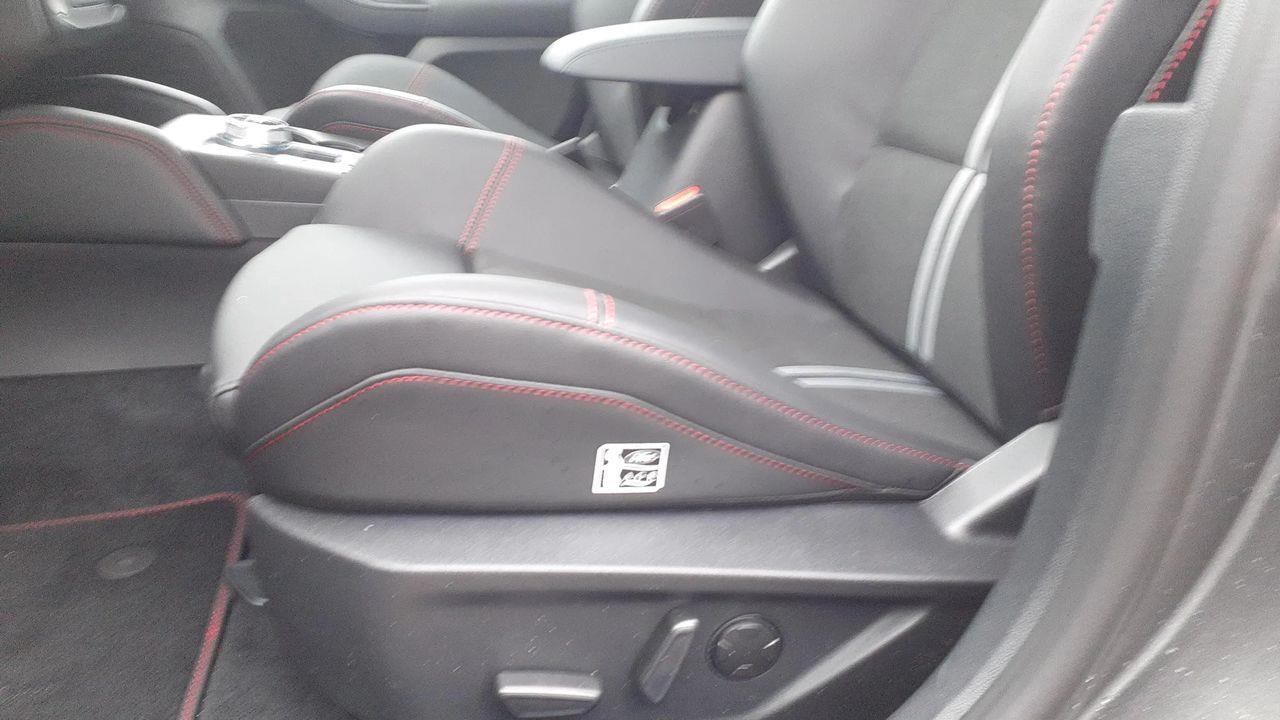 Fotele – z tapicerką częściowo skórzana ciemna Twin Track/ skóra ekologiczna Sensico z czerwonymi przeszyciami