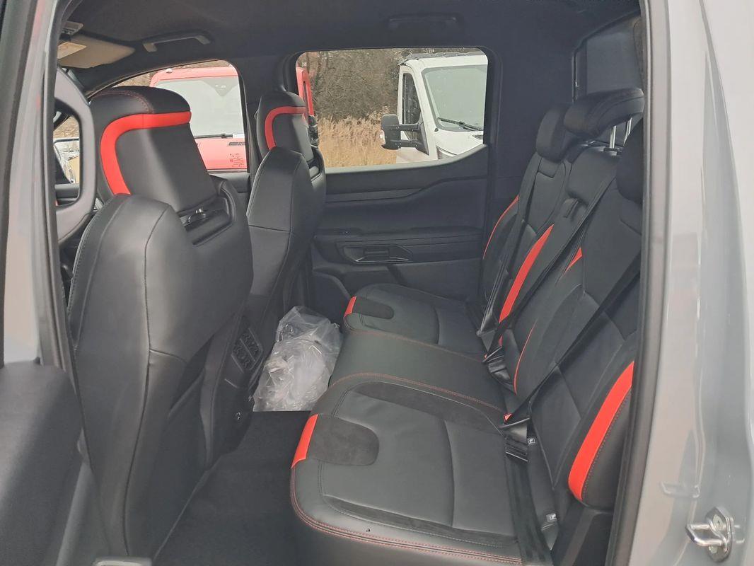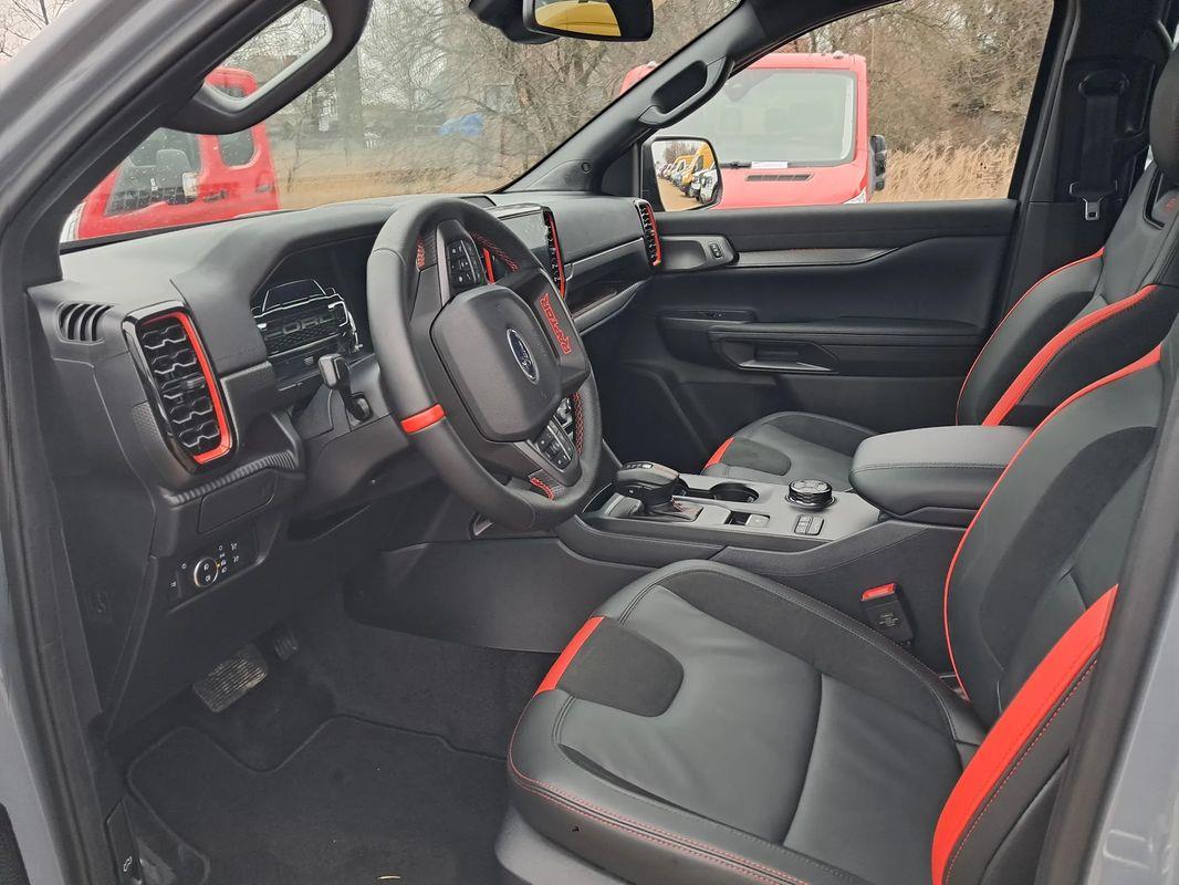 * Elektrycznie regulowane przednie fotele: fotel kierowcy regulowany w 10-ciu kierunkach (przód/tył, pochylenie oparcia, wysokość, nachylenie siedziska i podparcie odcinka lędźwiowego), fotel pasażera regulowany w 8-miu kierunkach z tapicerką skórzaną z logo Raptor, oraz funkcją przypominającą o zapięciu pasów bezpieczeństwa z przodu i z tyłu pojazdu.