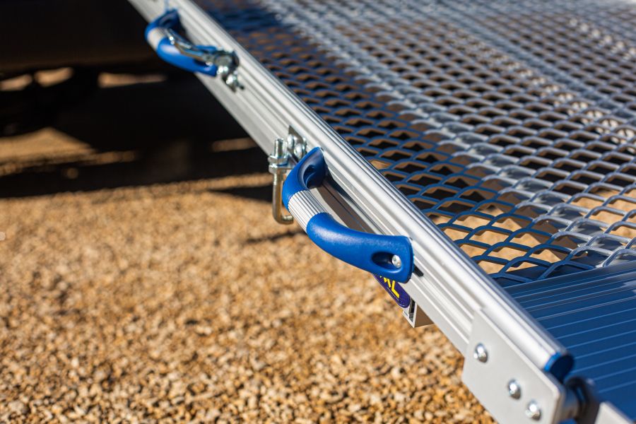 - Najazd inwalidzki BAR – CARGOLIFT (produkcja Niemcy) 800 x 2400 mm, otwierany ręcznie ze wspomaganiem, aluminiowy, lekki